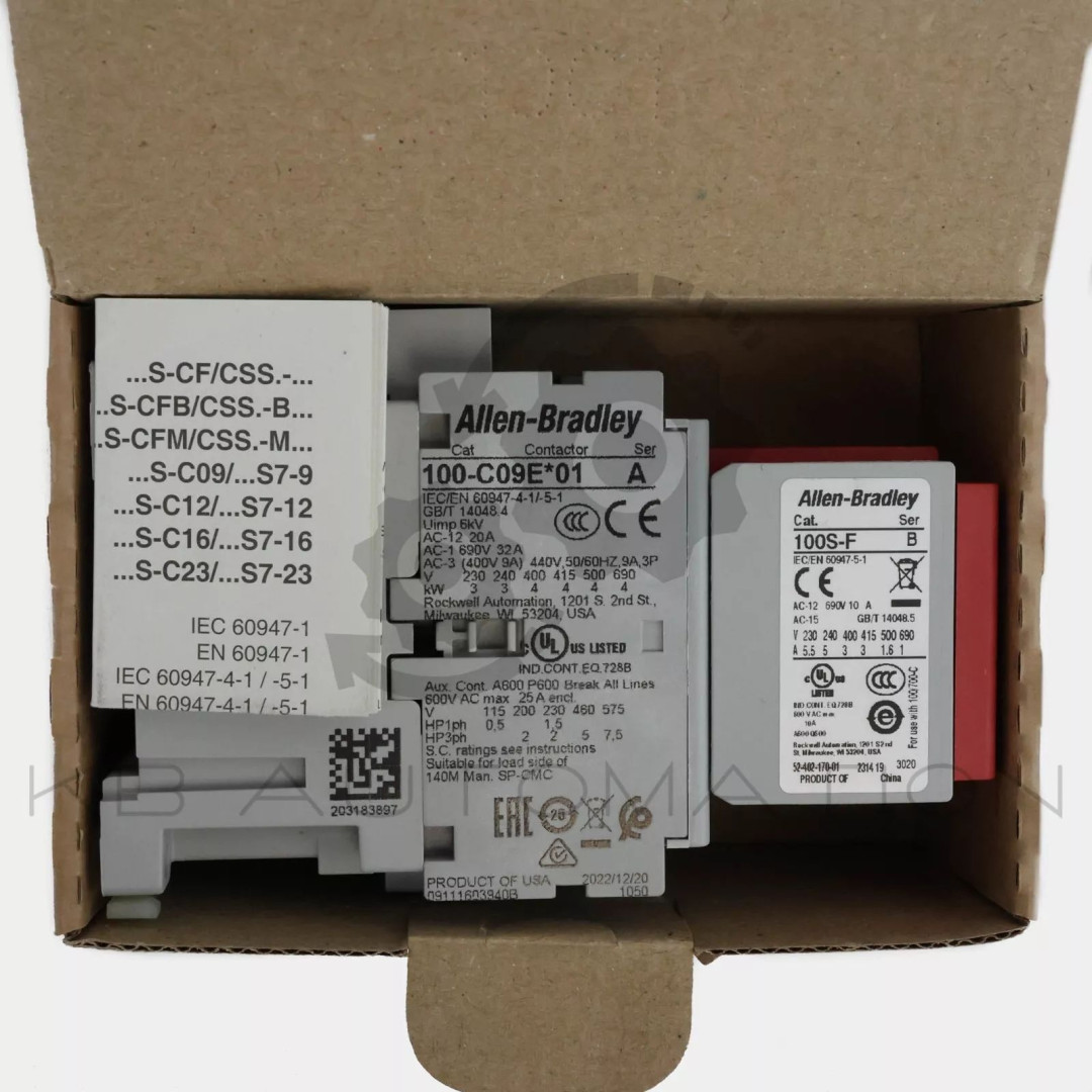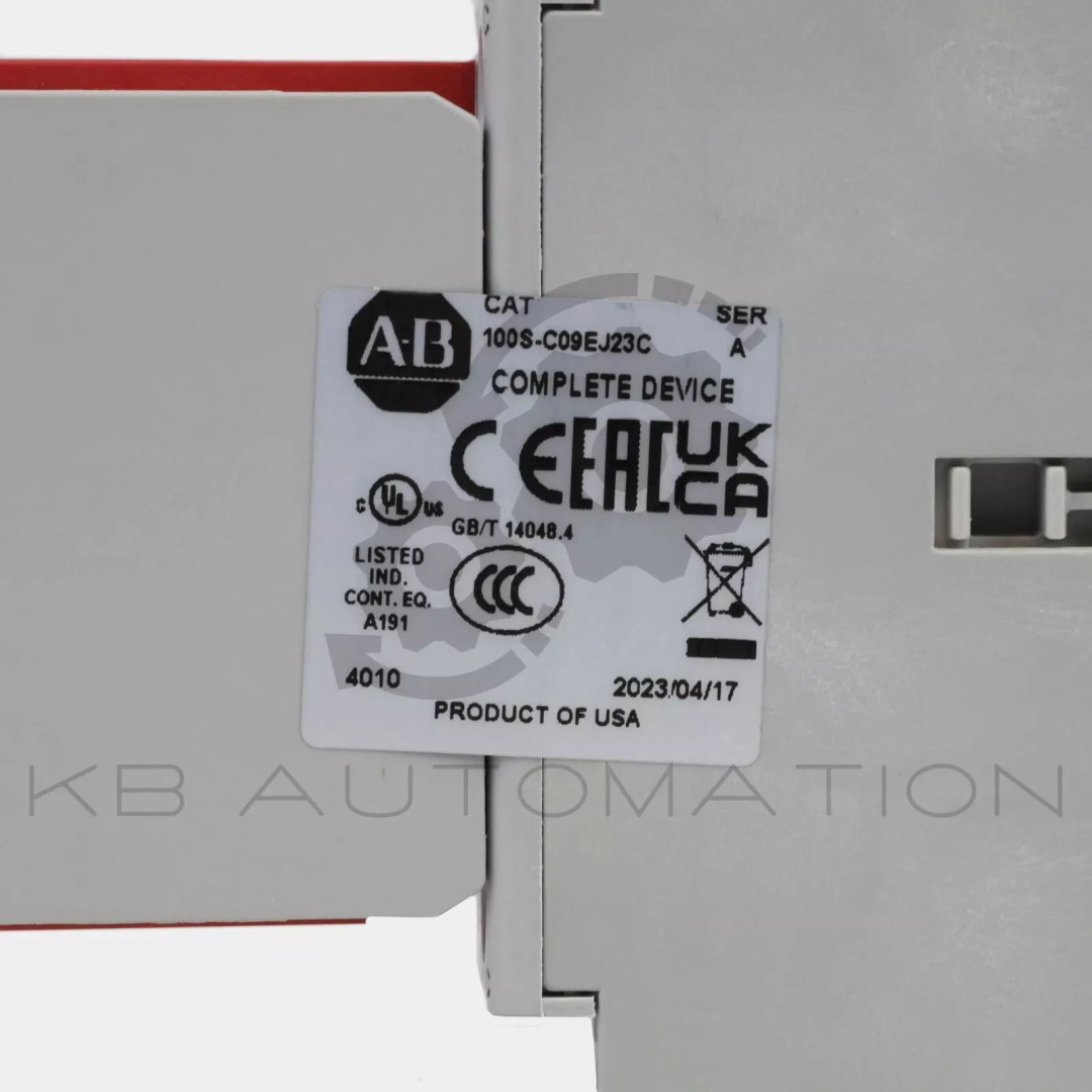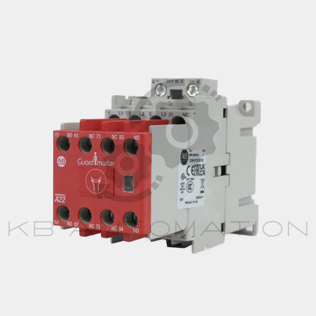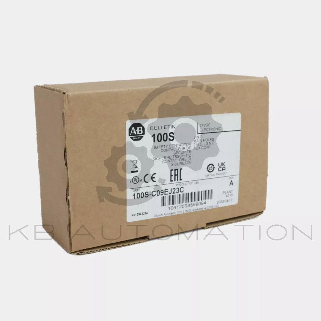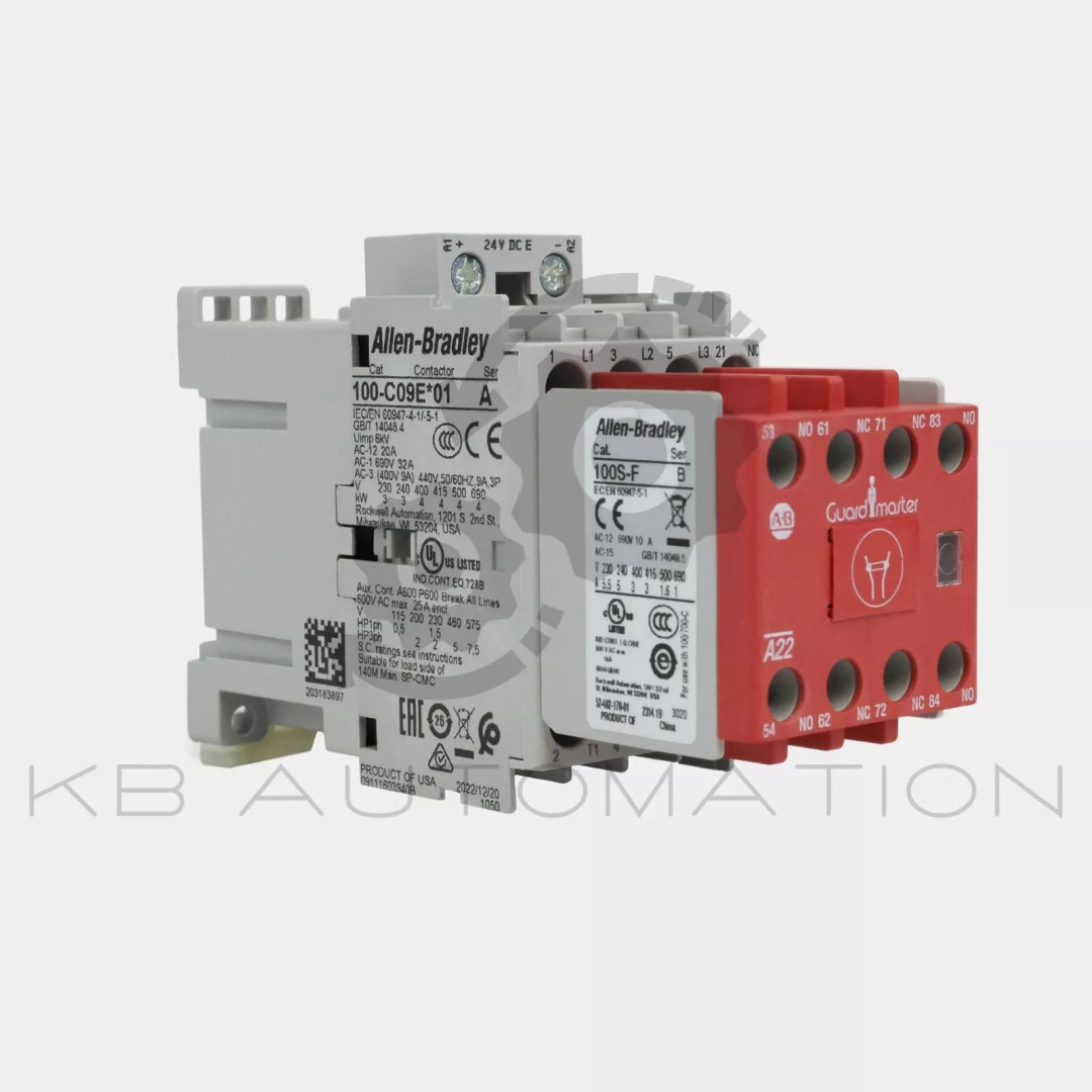 Bulletin 100S Safety contactor, 4kW, 9A, 24V (50Hz/60Hz) / 24VDC, 3 normally open power poles, 24V DC electronic coil, 2NOC & 3NCC, line side coil termination, standard contact