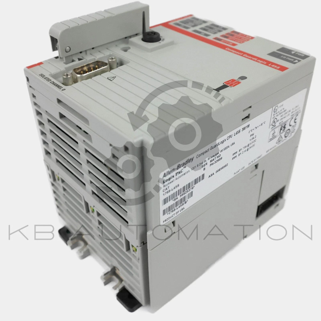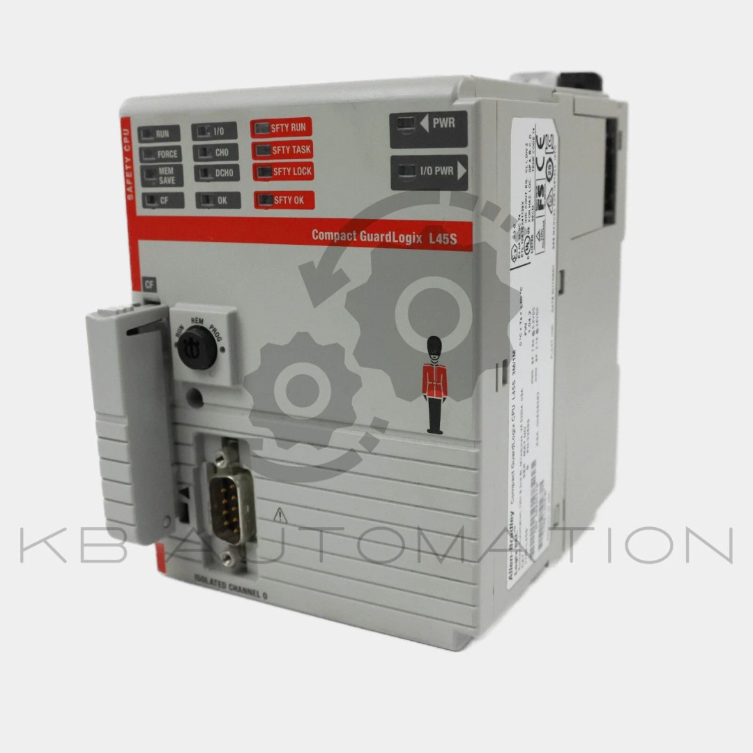 Compact GuardLogix safety controller, 3 MB standard and 1 MB safety memory, 1x RS-232 serial port (DF1 or ASCII), SIL3/PLe