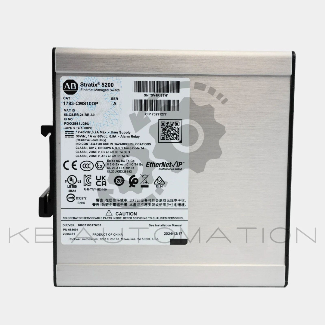Stratix 5200 Managed EtherNet Switch, 8 x 100/1000Mbps Copper Ports RJ45 and 2 x 100/1000Mbps SFP Slots, 2 x Power Source Connectors, 24/48V DC Power (12-60V DC Range), Full Software, IEEE 1588 Precision Time Protocol, Din Rail Mounting, IP30