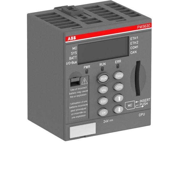 PM5630-2ETH: AC500 Processor module with display. Memory 8MB. Interfaces: 2 Ethernet, RS232/485, CAN - replaced by 1SAP131000R0378