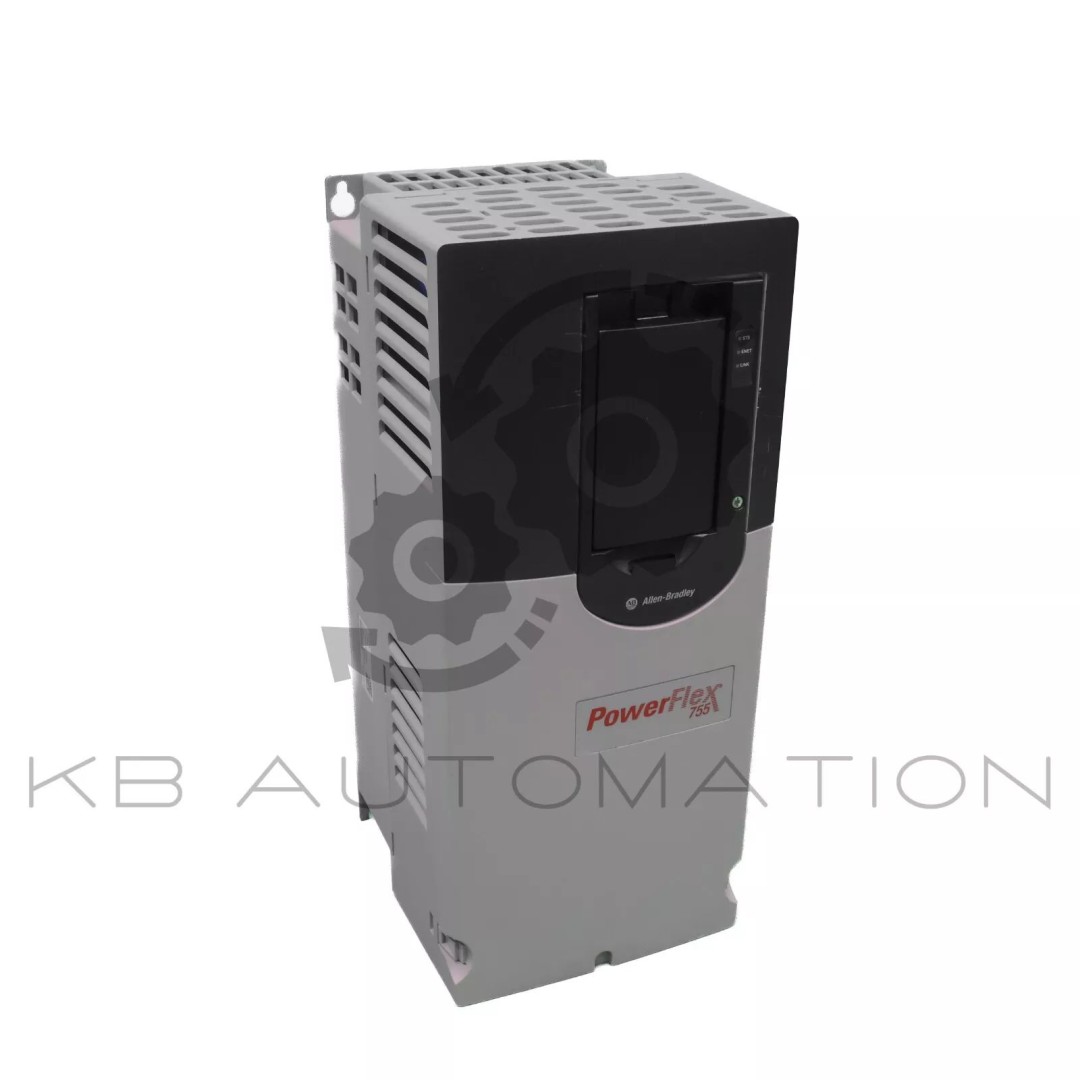 PowerFlex 755 AC drive, with embedded Ethernet/IP, air cooled, AC input with DC terminals, open type, 37 Amps, 18.5 kW (ND), 15 kW (HD), 400 VAC, 3-phase, frame 3, filtered, CM jumper installed, DB transistor, blank (no HIM) | FW: 11.002