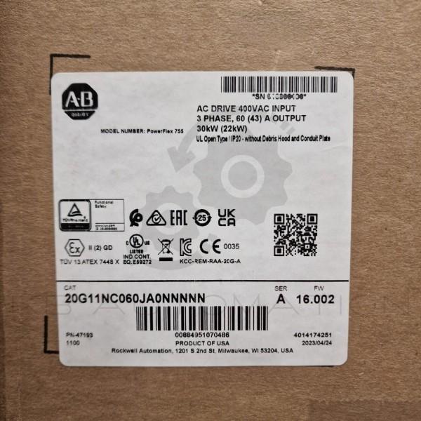 PowerFlex 755 AC drive, with embedded Ethernet/IP, air cooled, AC input with DC terminals, open type, 60 Amps, 30 kW (ND), 22 kW (HD), 400 VAC, 3-phase, frame 4, filtered, CM jumper installed, DB transistor, blank (no HIM) | FW: 16.002