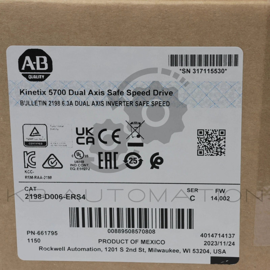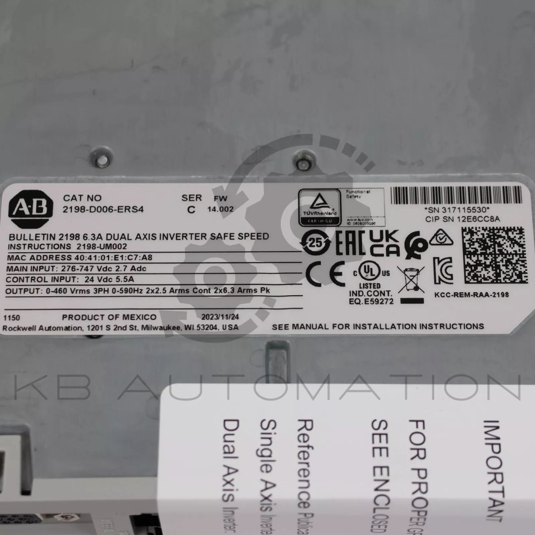 Kinetix 5700 Servo drive, dual-axis inverter, advanced safety, 276-746V DC input, 2x 2.5 Arms continuous current output, 2x 6.3 Arms peak current output, 2x 1.7 kW @ 324...528V rms, 3-phase continuous power output | Ser. C | FW: 14.002