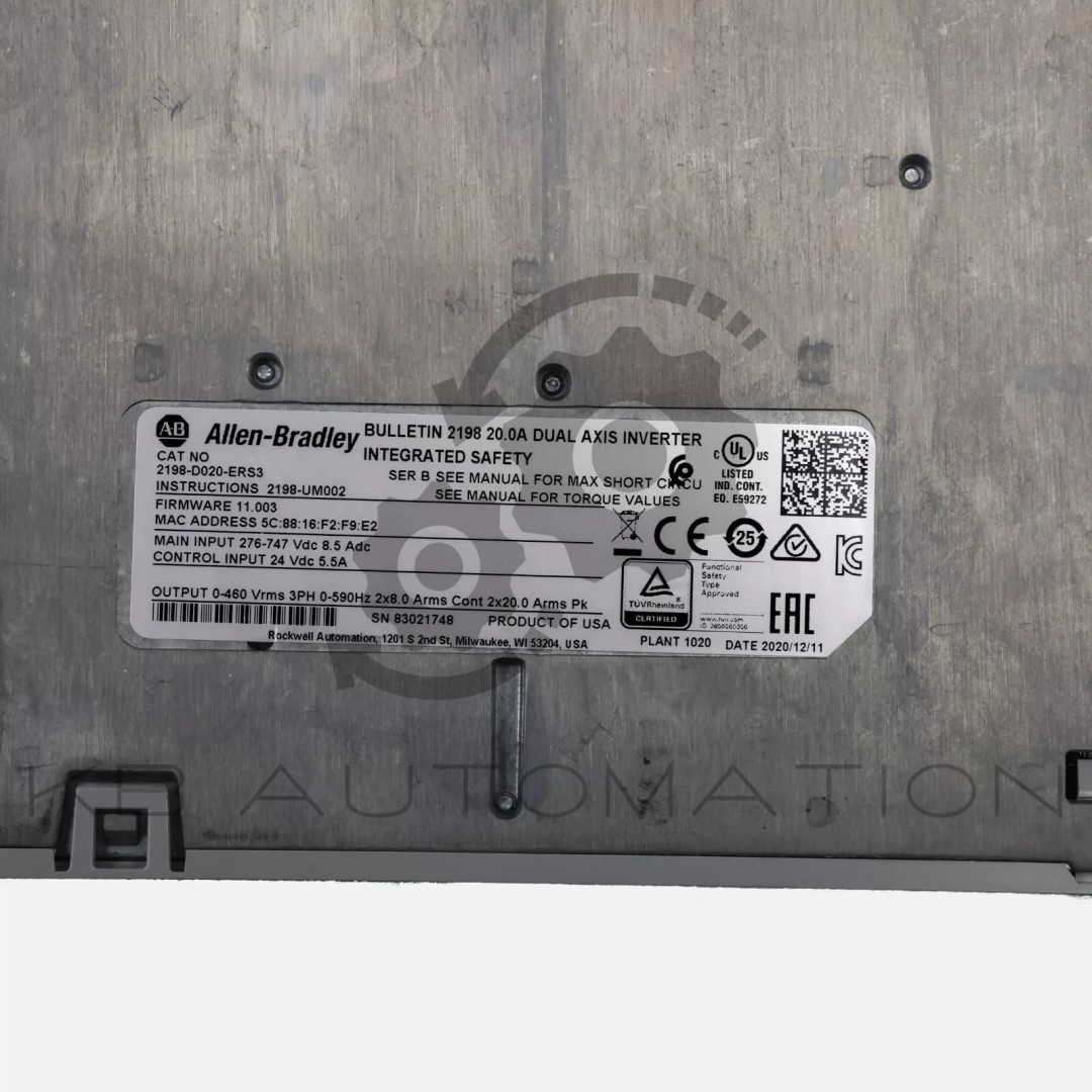 Kinetix 5700 Servo drive, dual-axis inverter, integrated safety, 276-746V DC input, 2x 8.0 Arms continuous current output, 2x 20.0 Arms peak current output, 2x 5.5 kW @ 324...528V rms, 3-phase continuous power output | Ser. B