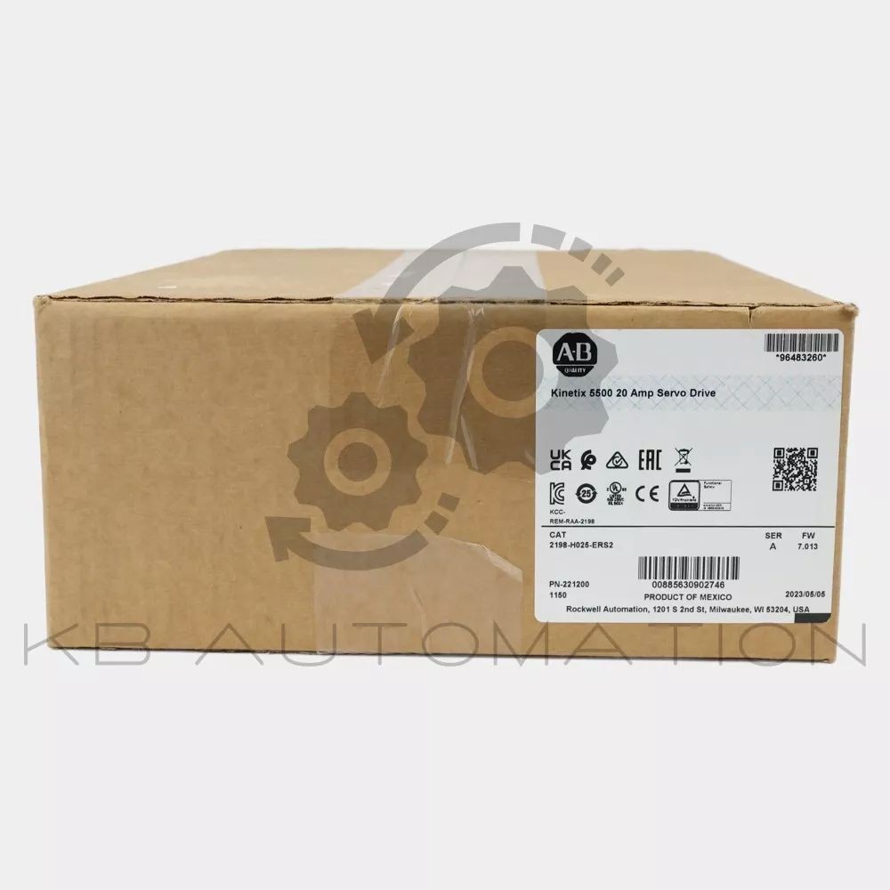 Kinetix 5500 servo drive, 5.1 kW @ 480V AC (3-phase), 2.4 kW @ 230V AC (3-phase), 20 A peak current output, hardwired safety option | FW: 7.013