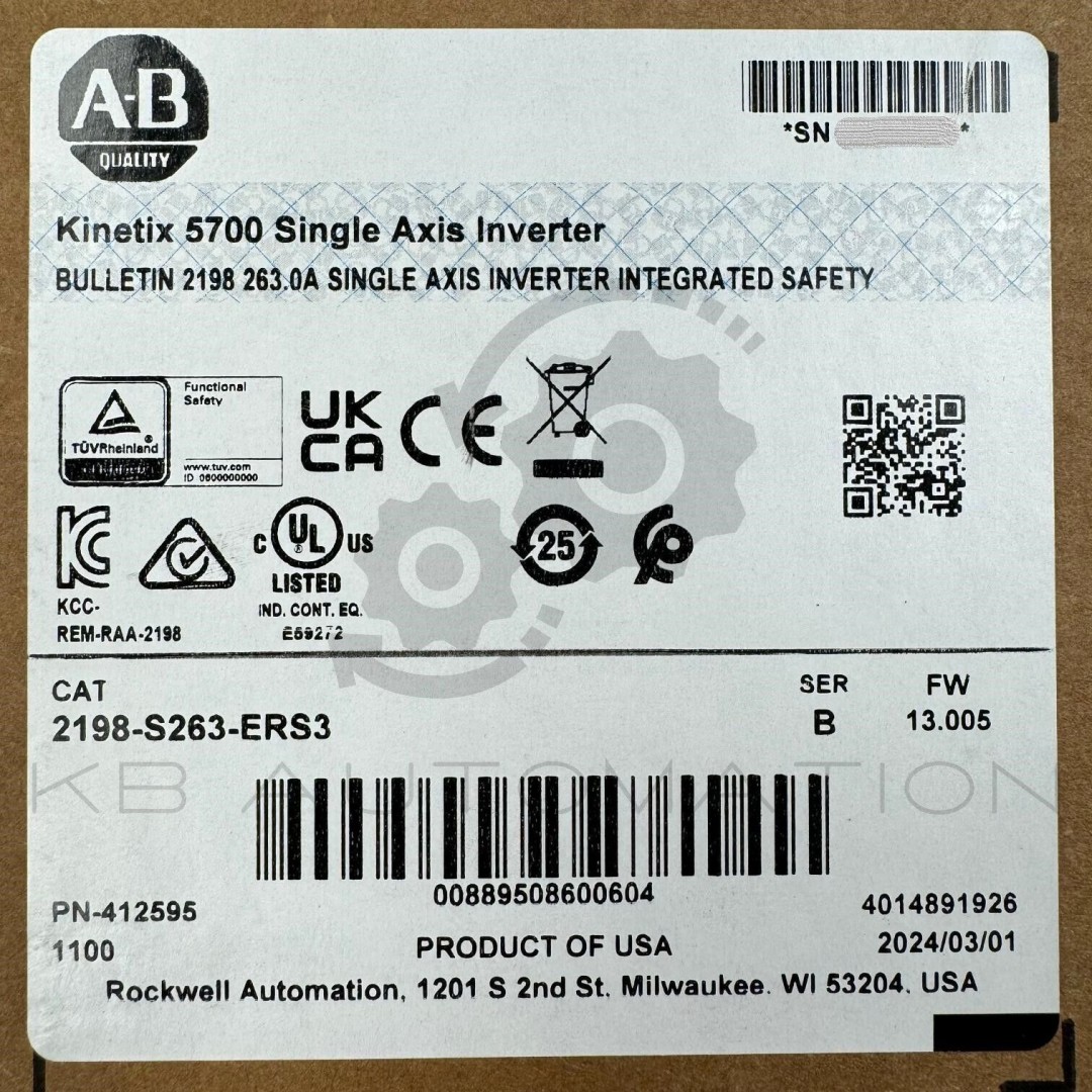 Kinetix 5700 Servo drive, Single-axis inverter, Integrated safety, 150 Arms continuous, 263 Arms peak output current, 90 kW @ 324...528V rms, 3-phase continuous power output, Frame: F8 | Series B (FW: 13.005)