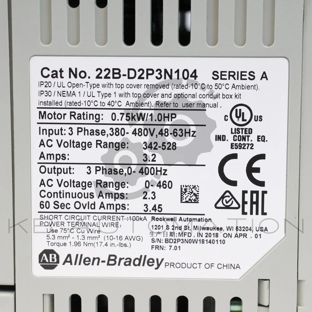 PowerFlex 40 AC drive, 380...480V AC, 3PH, 2.3 Amps, 0.75 kW, 1.0 HP, frame size B, panel mount - IP20, NEMA/UL Type Open, LED display, digital keypad, no CE compliant filter, RS-485 comms