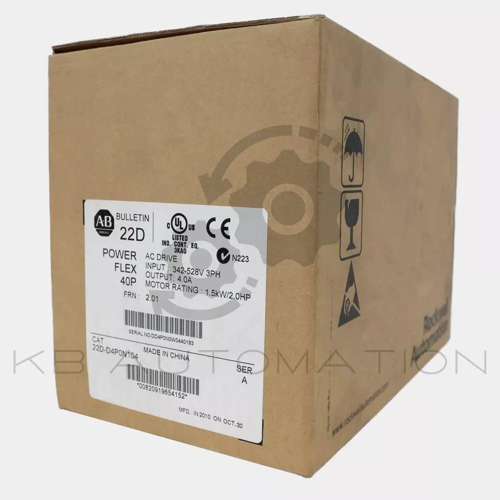 PowerFlex 40P AC Drive, 480VAC, 3-phase, 4.0 Amps, 1.5kW (2.0HP), Frame size: B, Panel mount IP20 (NEMA type open), Display with reset only, Without CE compliant filter