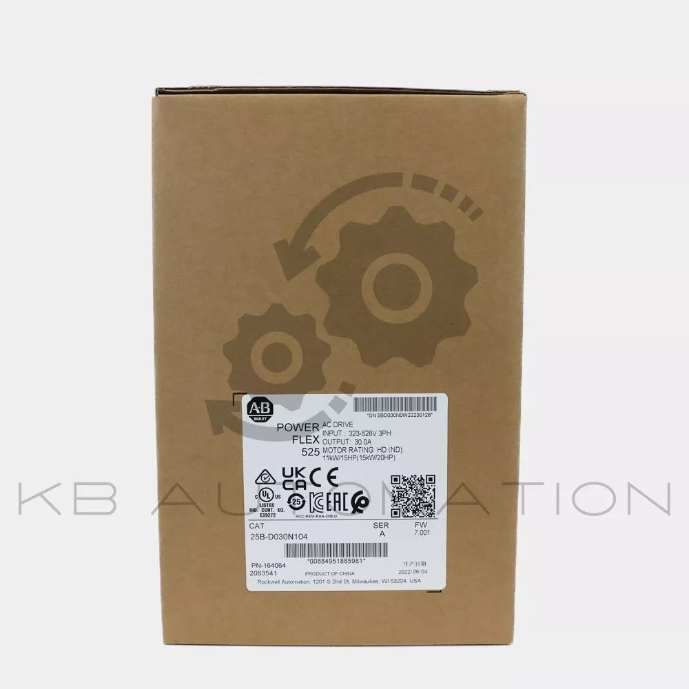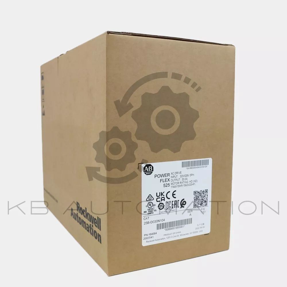 PowerFlex 525 AC Drive with Embedded EtherNet/IP and Safety, 380-480VAC, 3-phase, 30A, 20HP, 15kW, frame D, IP20 NEMA / Open Type, no filter