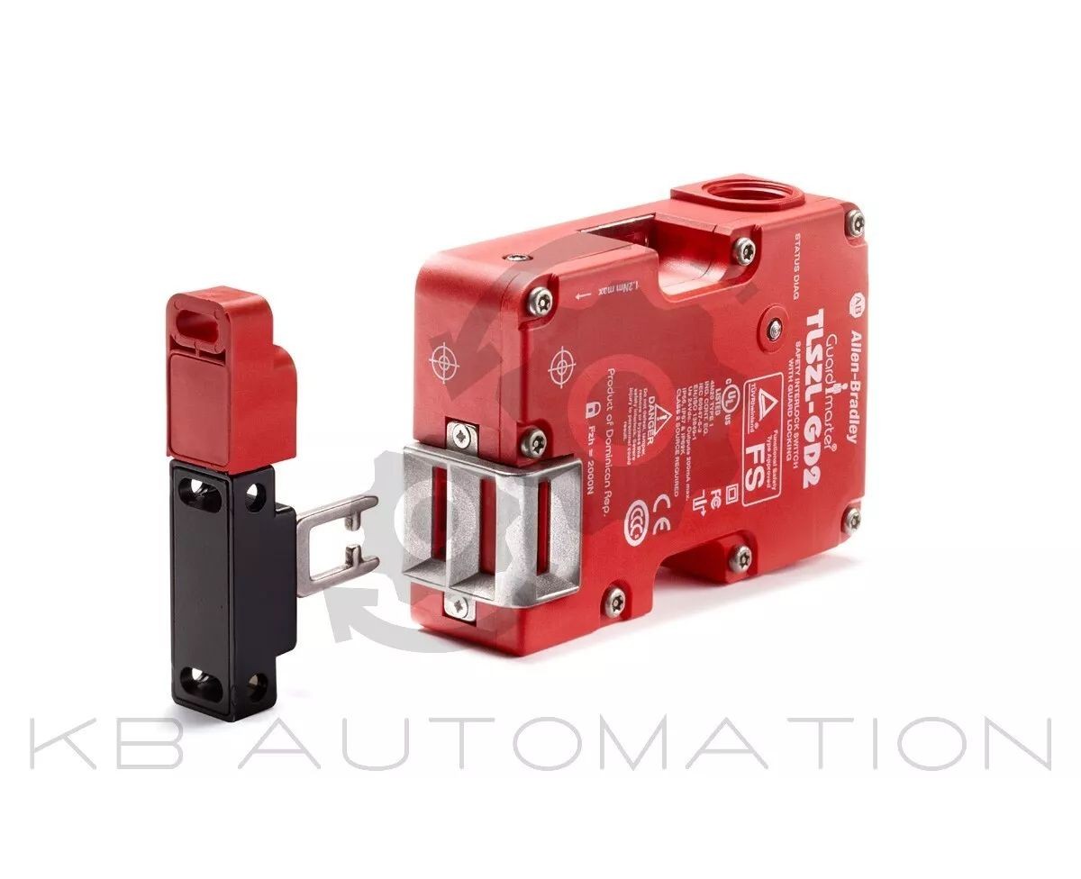 Guardmaster TLSZL-GD2 guard locking switch: power to lock, solenoid voltage: 24V AC/DC, solenoid contacts: none, contacts (safety and aux): 2x PNP (0.2A max.), 1x PNP (0.2A max.) - lock status, actuator: fully-flex, conduit entry: 8-pin micro (M12) | Ser. E | FW: C