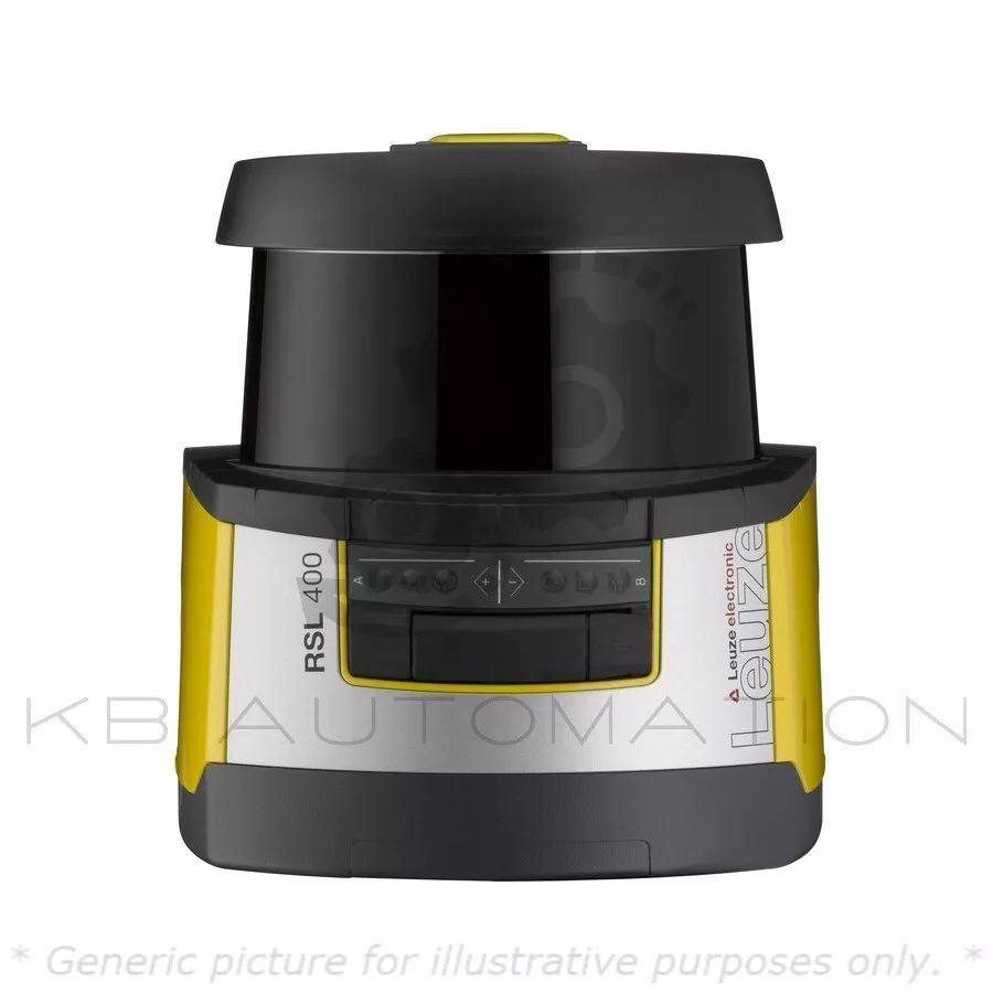 RSL 400 Series Safety laser scanner; Operating range (protective field data): 0 ... 8.25 m; Operating range (warning field data): 0 ... 20 m; Resolution (adjustable): 30/40/50/60/70/150 mm; Number of independent sensor configurations: up to 10; Object size: 150 mm x 150 mm