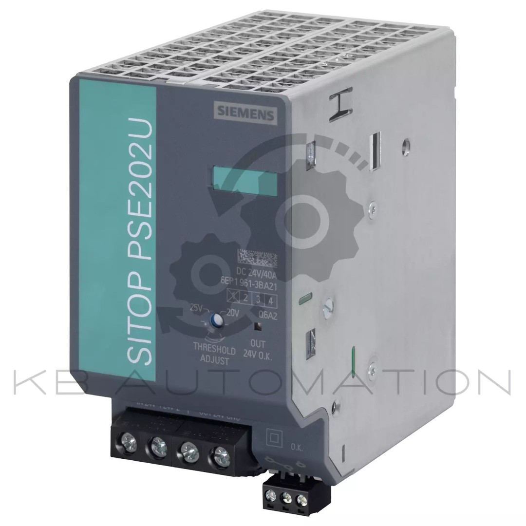 SITOP PSE202U redundancy module input/output: 24 V DC/40 A suitable for decoupling two SITOP power supplies with maximal per 20 A output current