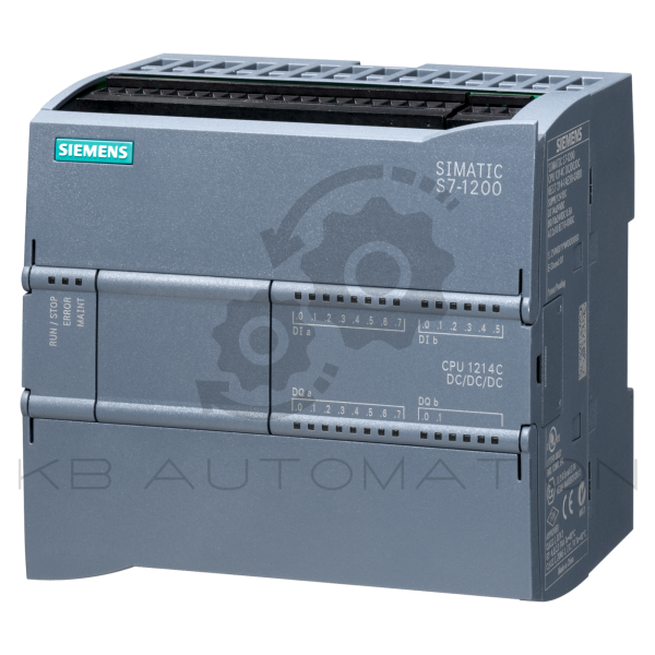 Simatic S7-1200, CPU 1214C, compact CPU, DC/DC/DC; onboard I/O: 14 DI 24VDC; 10 DO 24VDC; 2 AI 0-10VDC, power supply: 20.4-28.8VDC, program/data memory 150kB