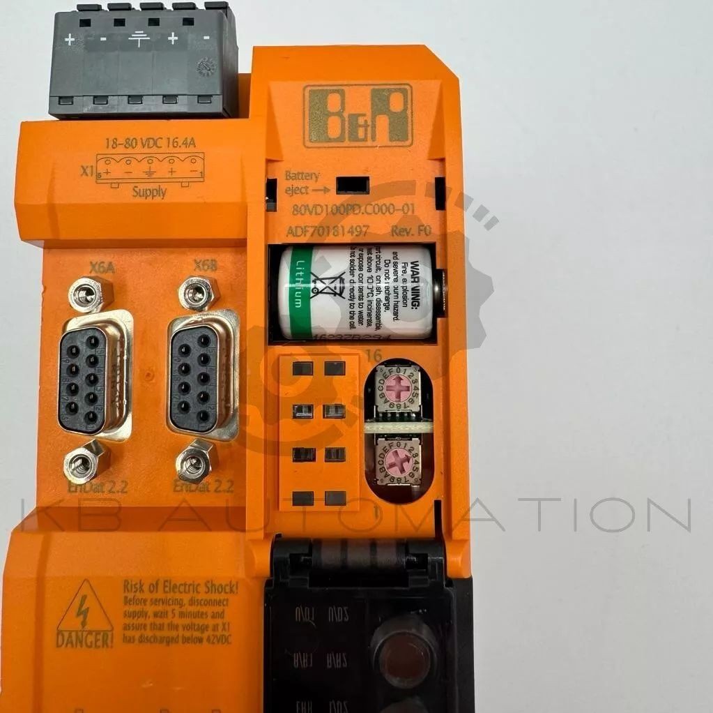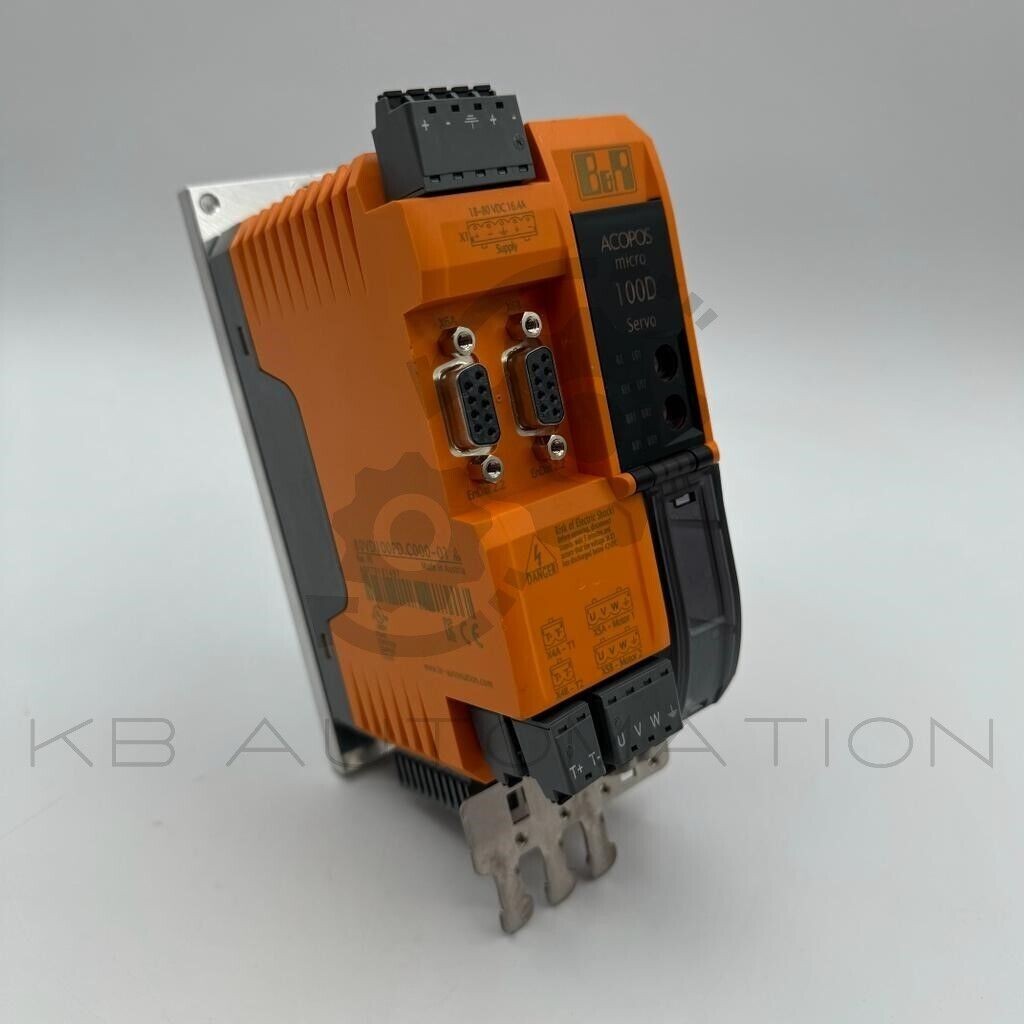ACOPOSmicro 100D inverter module, POWERLINK interface, 2x EnDat 2.2, 24-64VDC ±25% power supply, 2 motor connections, 8A continuous current, 2 digital inputs 24VDC, sink, can be used as trigger inputs, 1 digital output 24VDC, 1A | Rev. F0