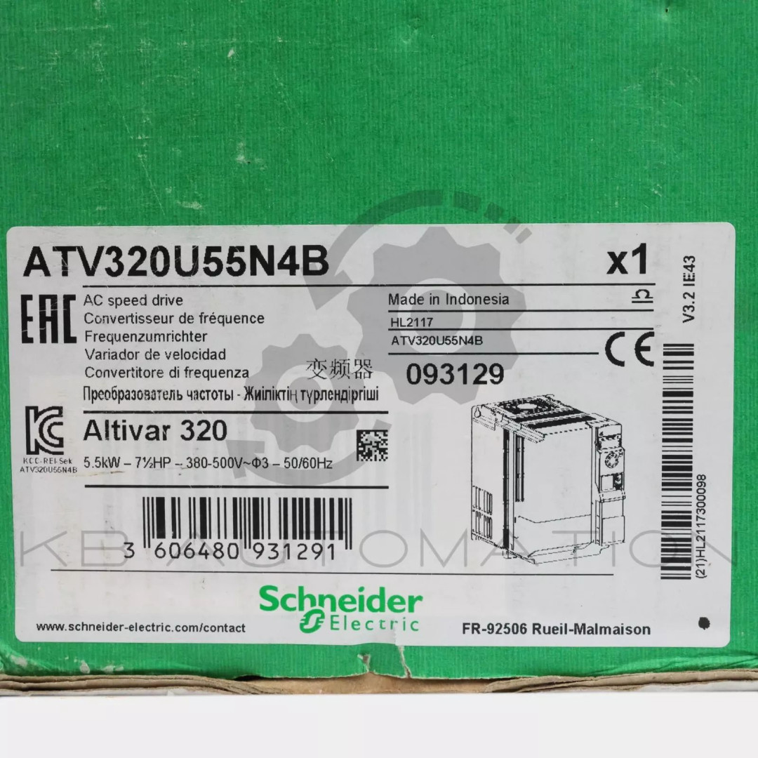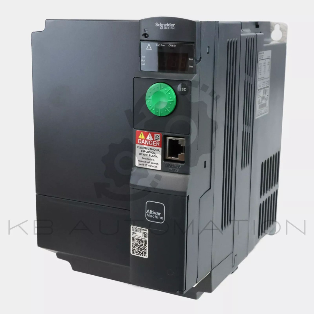 Altivar Machine ATV320 variable speed drive for 3-phase synchronous and asynchronous motors; Motor power: 5.5 kW (heavy duty); [Us] rated supply voltage: 380…500 V, 3-phase; Nominal output current: 14.3 Amps; Wall mount, book format; Communication ports: Modbus serial, CANopen; Class C2 EMC filter integrated