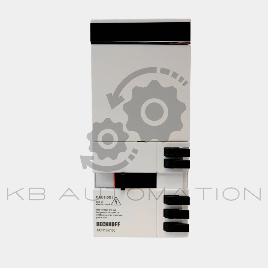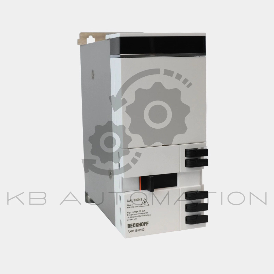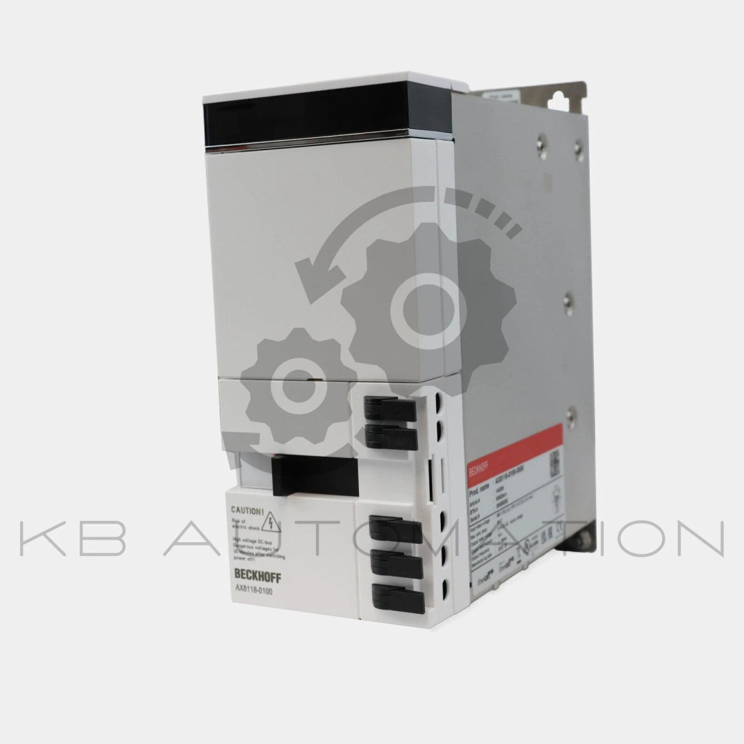 AX8000 Series Single-axis servo drive, axis module with TwinSAFE Logic; input rated voltage: 680 V DC (UL) 875 V DC (DC-Link max.); 18.0 A rated output current (channel); 40.0 A peak output current (channel); OCT, EnDat 3 feedback; Safe Torque Off (STO), Safe Stop 1 (SS1); EtherCAT