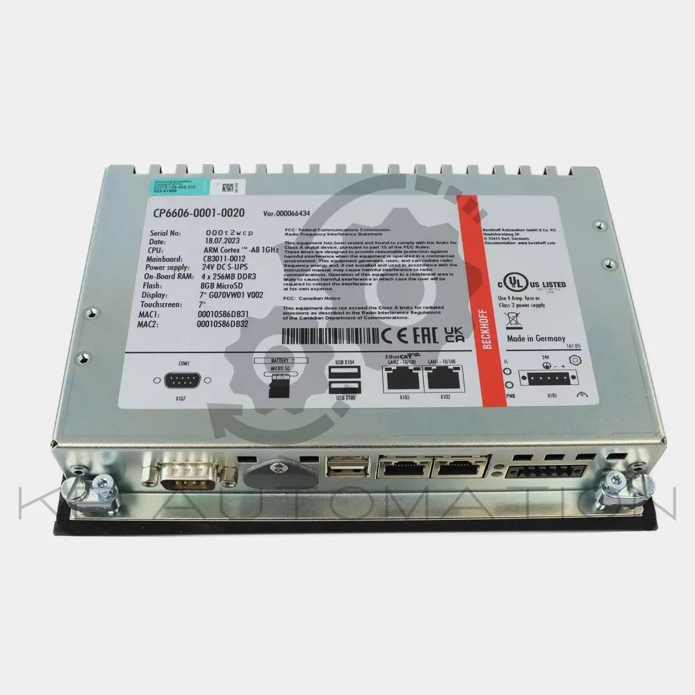 Single-touch Panel PC; 7-inch (800 x 480 pixels) Economy Panel PC; Aluminum front with sheet-steel rear cover; Processor: Arm® Cortex®-A8, 1 GHz (TC2, TC3: 30); 1 GB DDR3 RAM memory; 512 MB microSD card; 1x Ethernet, 1x EtherCAT, 2x USB 2.0, 1x RS232; Windows Embedded Compact 7 operating system; 24V DC power | Variant: 000066434
