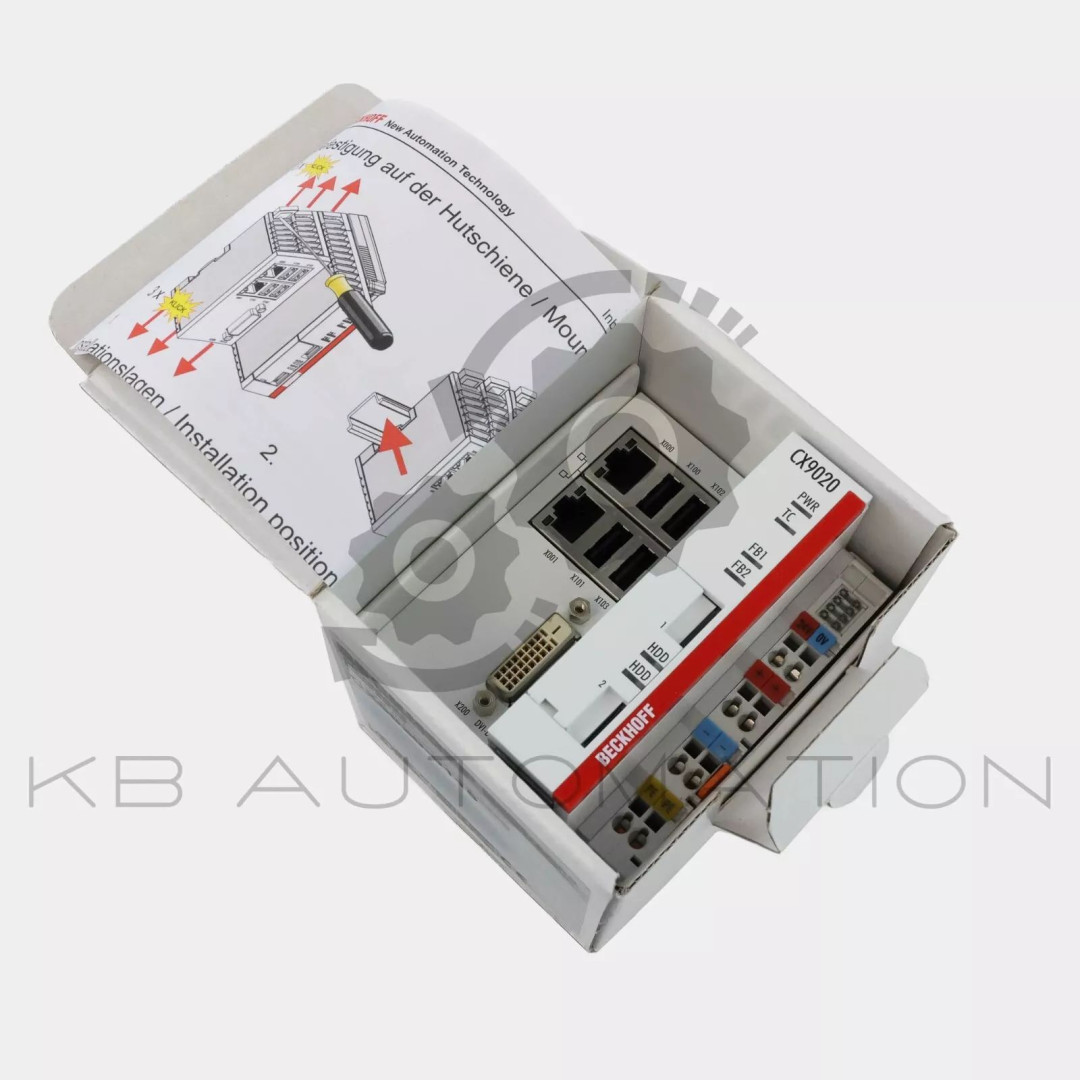 Embedded PC with 1 GHz Arm® Cortex®-A8 CPU; Main memory: 1 GB DDR3 RAM (not expandable); Flash memory: 2 x slot for microSD card, 512 MB included (optionally expandable); Interfaces: 2 x RJ45 10/100 Mbit/s (internal switch), 1 x DVI-D, 4 x USB 2.0, 1 x optional interface; E-bus or K-bus (automatic recognition); Windows Embedded Compact 7, TwinCAT 3 runtime (XAR), no licenses included