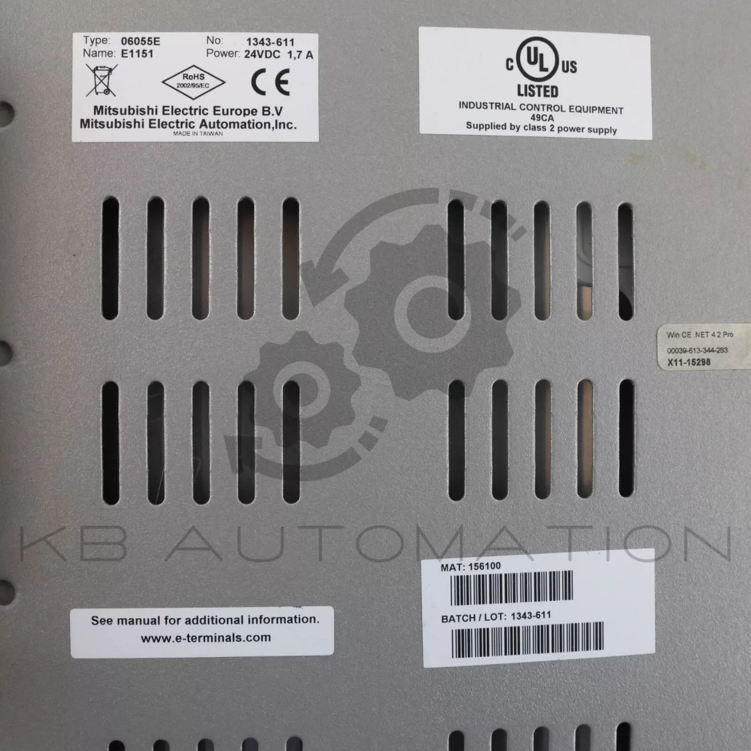 E1000 Series Graphic operator terminal, 1024x768 pixels, 15-inch TFT-LCD display, touch screen, Ethernet & Serial port, 12MB project memory, 20-30V DC power, 0 to +50°C operating temperature