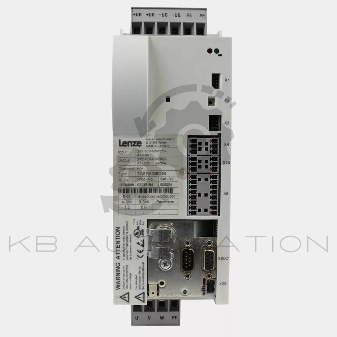 ECS Servo System Dual-axis motion module; Input: 2/PE DC 565/675V, 4.9/3.9A; Output: 3/PE AC 0-400/480V, 4.00/3.20A rated output current, 8.0A peak current output; 0-600Hz; Fieldbus interface: CAN system bus | Material number: 13230898