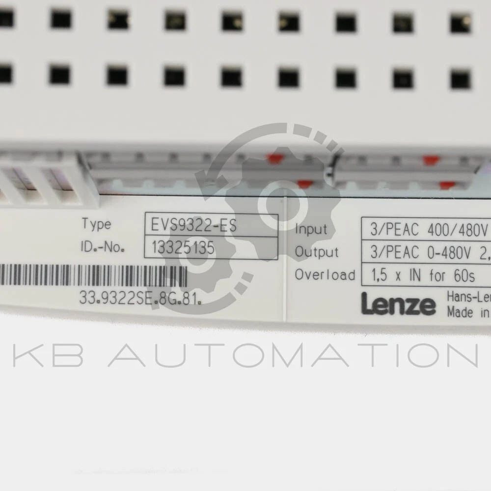 Type EVS9322-ES 9300 servo inverter; Input: 3/PE AC 400/480V, 50/60Hz; Output: 3/PE AC 0-480V, 2.5A, 2.1kW, 0-480Hz