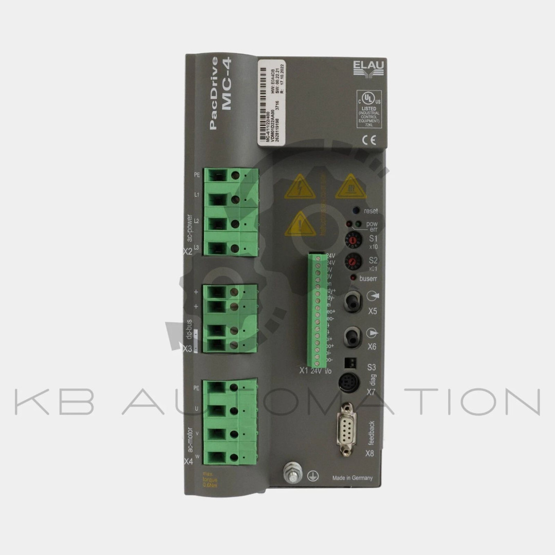 Elau by Schneider Electric VDM01D22AA00 PacDrive MC-4 / 22 A Servo drive; Rated supply voltage: 3AC 380-480 V (±10%) 48-62 Hz; DC-circuit voltage: 530-680 V DC; Rated current 8 kHz (INC): 22.0 Aeff, Peak current 1 s (ISC): 55.0 Aeff; Rated output: 15.2 kVA; Control voltage: 24 V DC | Material number: 13130254