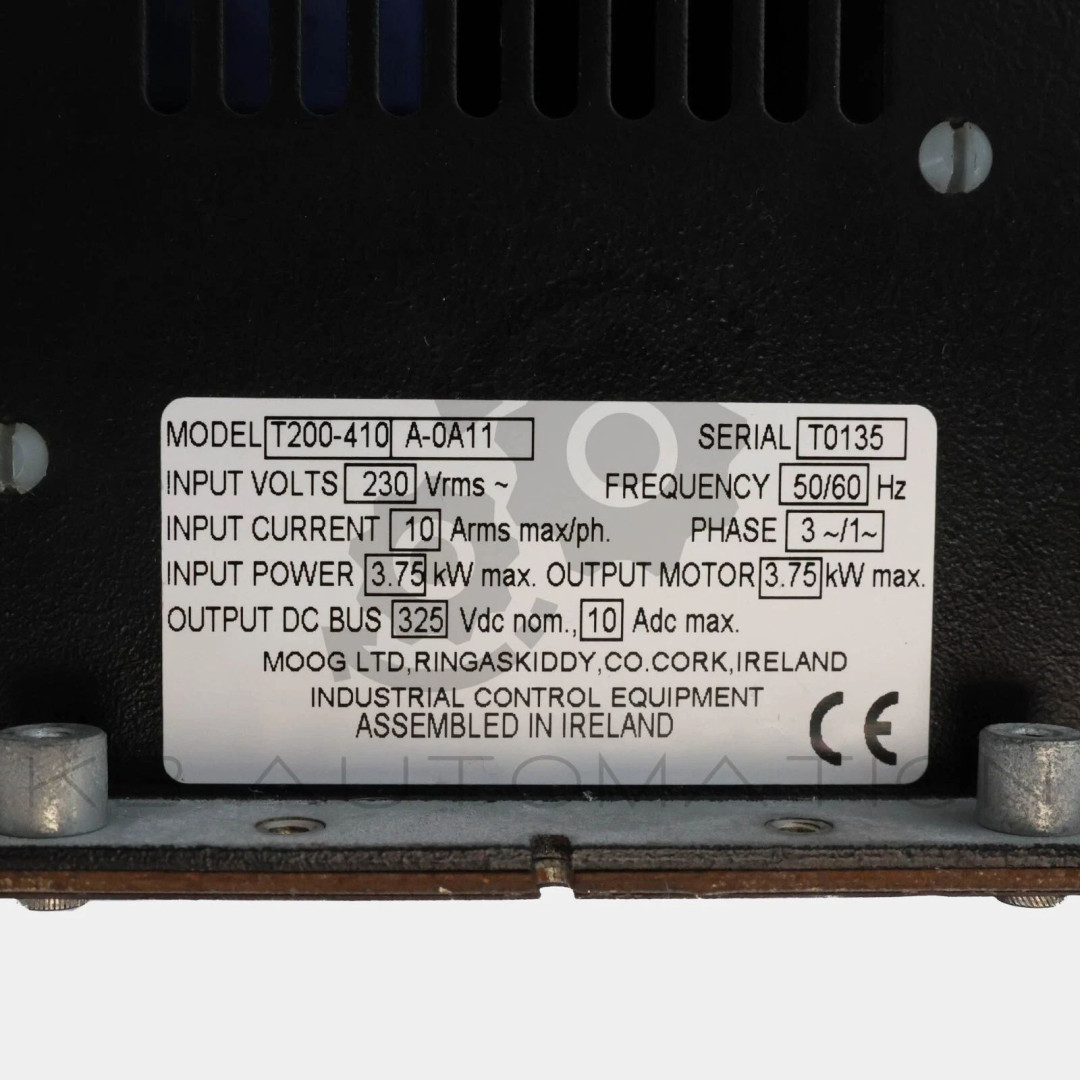 T200 Base Model Servo drive; Input voltage: 230 Vrms; Input current: 10 Arms; Output motor power: 3.75 kW max.; Output DC bus: 325 VDC nom, 10 ADC max.