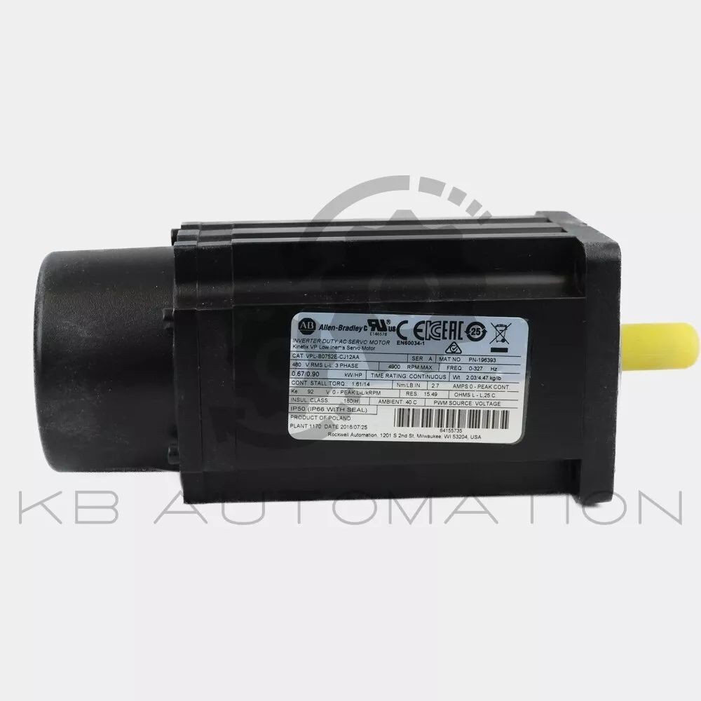 Kinetix VP low inertia servo motor, 400VAC, 75mm frame size, 2 magnet stacks, 4900rpm rated speed, 18-bit absolute single-turn digital encoder (Hiperface DSL protocol), shaft key, single SpeedTec Din connector, no holding brake